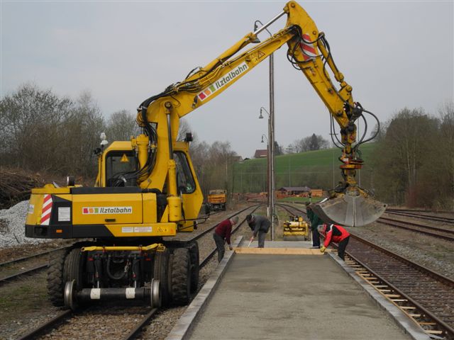 Die Aktiven des Fördervereins haben im April 2014 den Waldkirchner Bahnsteig komplett erneuert (Foto: Alois Pauli).
