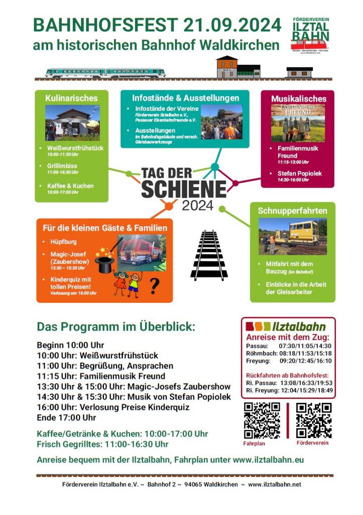 Am Samstag, 21.09.2024, laden wir zu unserem Bahnhofsfest am Bahnhof Waldkirchen ein: