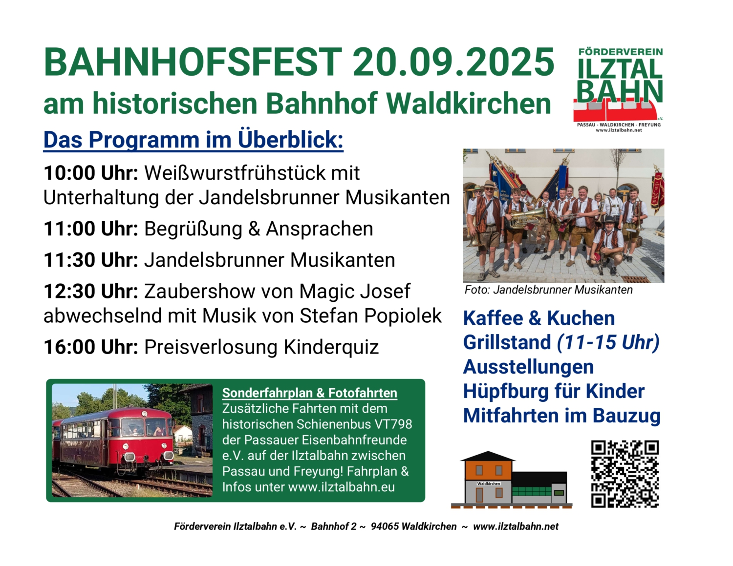Am Samstag, den 20.09.2025 veranstaltet der Förderverein am Bahnhof in Waldkirchen ein Bahnhofsfest zum „Tag der Schiene“.