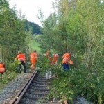 Unseren vielen freiwilligen Helfer rücken bei jedem Wetter aus um die Strecke in Stand zu halten. Doch die größte Arbeit war die Strecke von einem Jahrelang unbenutztem Zustand wieder herzurichten, dass der Zug fahren kann.